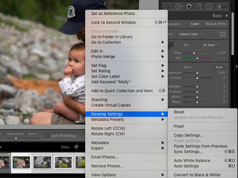 So you’ve captured a series of photos – these photos all look, well, kind of the same. They were taken in a similar setting with similar lighting etc. Rather than edit each photo individually, but with the aim of making it look the same, Lightroom has a great syncing or copying/pasting tool that allows you to edit just one photo in the series and copy these settings over to the rest. This means that you spend your time delicately editing just one photo, and then touching up the rest.