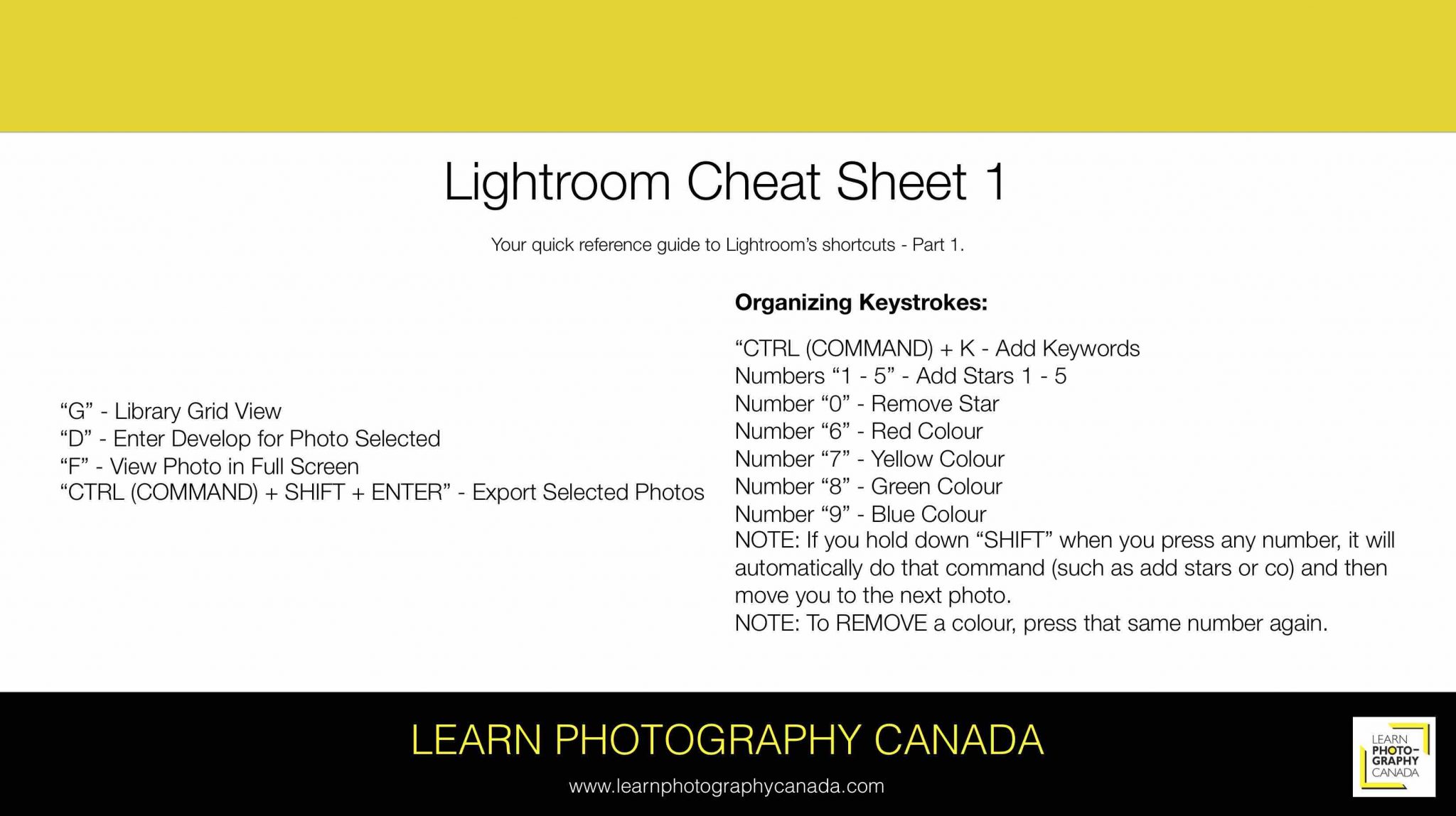 Your FIRST Lightroom Shortcut Cheat Sheet