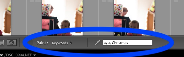 Step 3: Select what you want to paint using the drop down box and the text box as required. In the first case, we want to paint the keywords Ayla & Christmas on to our photos. In the second case, we are painting the colour yellow onto a set of photos.